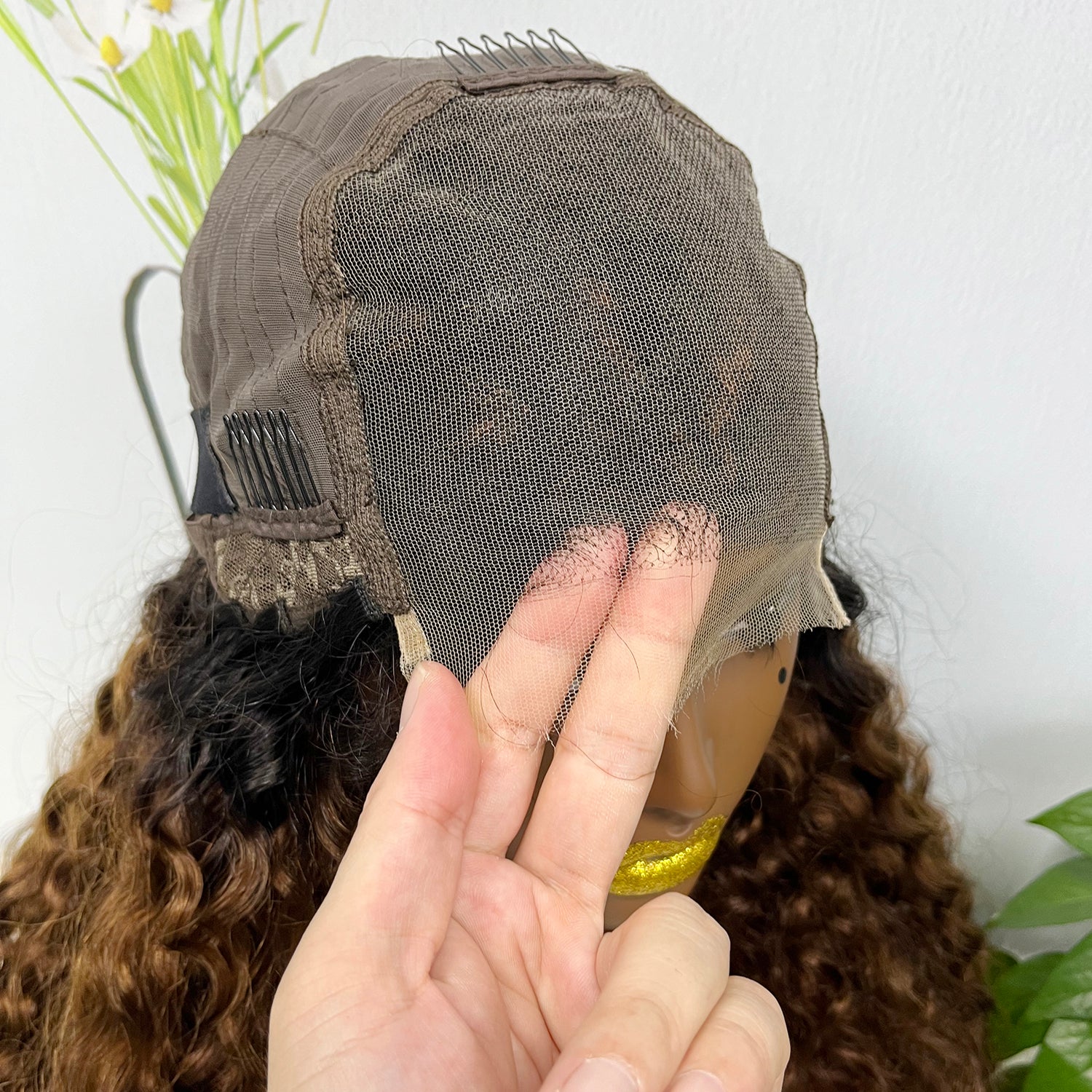 6. Si les cheveux sont ondulés ou bouclés, nous ne suggérons pas de les peigner. Si nécessaire, veuillez le peigner doucement avec les mains ou une brosse à dents larges. Une brosse à dents serrée va ruiner la forme originale des cheveux et les rendre pétillants et donner l'impression d'être emmêlés ! Veuillez toujours peigner les cheveux à partir des pointes et remonter.